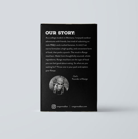 Range Meal Bars is a meal bar company out of Oregon. I have been working with them for a few years now & have created their logo and packaging for two different flavors. Each bar is 700 calories to keep outdoorsmen and women on the mountain without crashing from hunger. The Tetons are featured in the logo as well as a carabiner and a rope. The packaging features a topographic map and a panel that explains the fresh, organic ingredients that Range uses in their meal bars. You won't find any unnecessary fillers in either the bar or their branding.
